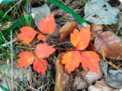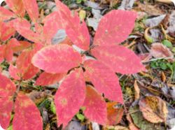 つる性落葉樹(shù)。3枚1組の葉で幼木には切れ込みがあるが成木の葉にはない。秋早くから紅葉する。かぶれの原因となる成分が強(qiáng)い