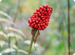 棍棒狀の花の塊を「仏炎苞 (ぶつえんほう)」という花のように見(jiàn)える1枚の苞(ほう)が包み込む。トウモロコシのように果実をつけ、秋に赤く熟す