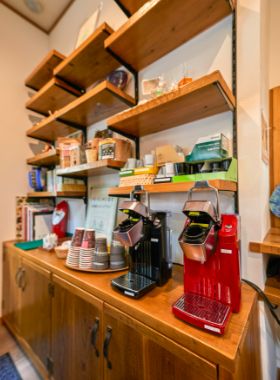 蔵王シェアサロンにはフリードリンクコーナーをご用意しているほか、散歩やトレッキングに出かけられる方を?qū)澫螭恕⑿茆彜钨Jし出しも行っています