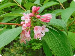 日本固有の落葉低木。谷沿いや林縁などの日當(dāng)たりの良い場(chǎng)所に生え、5?6月にピンク色で漏斗狀の花を房狀につける。観賞用にも栽培される