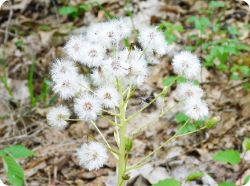 明るい空き地で、タンポポの綿毛を小さくしたような綿毛をたくさんつけているのはフキです。フキノトウはフキの若い花莖。花を咲かせながら花莖を高く伸ばし、雌株は綿毛がついた種子をつけます。足を進(jìn)めると小さなサクランボがなっているのを見(jiàn)つけました。葉柄に毛があるのでヤマザクラより開(kāi)花が少し遅いカスミザクラのようです。ウワミズザクラにも実がついていますが、細(xì)長(zhǎng)いブラシのような花が一房だけ殘っていました。マルバアオダモの花もそろそろ終わりのようです。