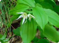 4?6月に先の尖った6弁の白い花を莖の先端に1?2個(gè)、斜め下向きにつける。地下莖を伸ばし群落を作る。果実は秋に黒く熟す
