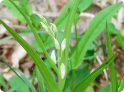 山野の林內(nèi)に生育する野生のラン。4?6月に1cmほどの白い花を數(shù)個(gè)つける。名前はギンランに比べ葉が細(xì)長(zhǎng)く、ササの葉に似ていることから