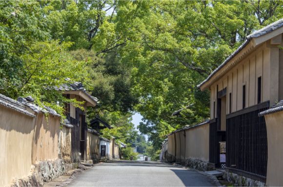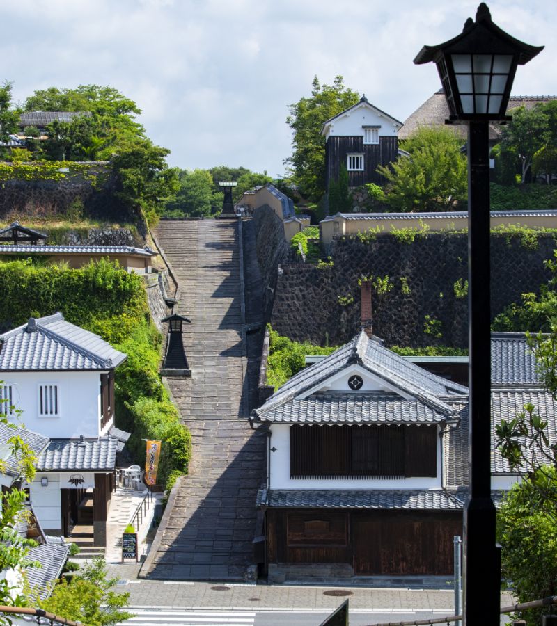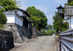 その昔、海に面して築城された杵築城を中心に據(jù)え、南北の高臺(tái)に當(dāng)時(shí)の武士たちが屋敷を構(gòu)え、その谷間で商人たちが暮らしていました。武家屋敷と商人のまちを結(jié)ぶ坂は、北の「酢屋の坂」に南の「塩屋坂」。石畳でできたふたつの坂が一直線狀に向かい合う景色は、杵築獨(dú)特のものです。高臺(tái)の武家屋敷を歩いていると、土壁が続く町並みや藁葺き屋根の家老屋敷、急に広がる竹林など貴重な景観と巡り合います。「勘定場(chǎng)の坂」「番所の坂」「寺町」「家老丁」などの地名からも城下町の名殘を感じ、國(guó)東半島の政治経済の中心地といわれた舊杵築藩時(shí)代に、思いをはせることができます。