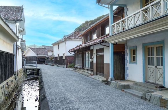 モダンな洋風建築や昔ながらの屋敷が軒を連ねる、江津本町甍(いらか)街道