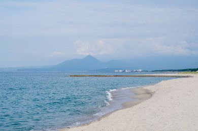 (寫真左)大山の稜線が見える弓ヶ浜半島。大山からも弓ヶ浜の曲線を望むことができる
