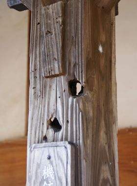 (寫(xiě)真右)ホームの柱には今も第二次世界大戦時(shí)の機(jī)銃掃射の痕跡が殘る