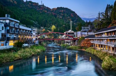 (寫(xiě)真左)清麗な天降川が流れる妙見(jiàn)溫泉街