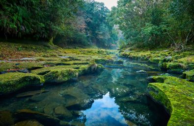 橫川町の人里離れた山の中に「大出水(おおでみず)の湧水」と呼ばれる湧水が湧き出ています。ここは霧島連山を水源とする、毎分22トンもの水が湧き出る場(chǎng)所。その橫を流れる久留味川の緩やかな流れは、周囲の神秘的な景観と相まっていつまでも見(jiàn)入ることができます。また、妙見(jiàn)溫泉街を流れる天降川(あもりがわ)も、川底が見(jiàn)えるほど透き通った美しい川です。天降川の中流域は、流れで旋回する小石が軟弱な巖盤の川床を削ってできた「真米甌穴群(まごめおうけつぐん)」が見(jiàn)られる地質(zhì)學(xué)的にも貴重な地域。自然の中でも、霧島の悠久の時(shí)間を感じることができます。