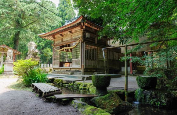 名水が流れる霧嶋神社。毎年、新米仕込みの甘酒で五穀豊穣を祈る「甘酒祭り(別名:かかあ天下祭り)」が行われる