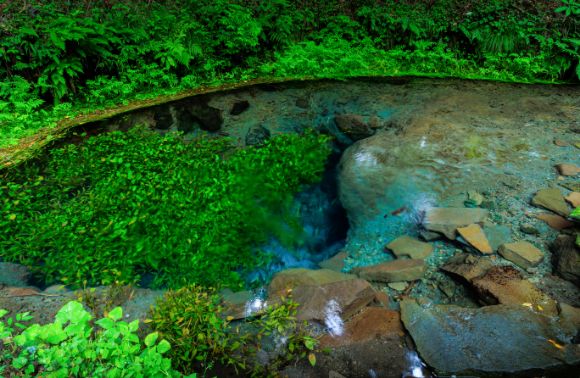 阿蘇くじゅう國立公園の一角にある黒岳は、全體が原生林に覆われているくじゅう山群唯一の山。その山麓には1日に約2萬トンが湧出する「男池(おいけ)湧水群」があります。池底まではっきりと見えるほど透明な水は、深さが増すほどエメラルドグリーンに変わって神秘的です。遊歩道を進むと苔むした巖や、大きな巖を摑む巨木たちにも遭遇。長い年月をかけてつくられたダイナミックな自然に包まれています。