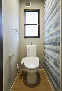 トイレは白基調の內裝でしたが、床材とクロスを張り替え、ぬくもりを感じられる空間に仕上げました。