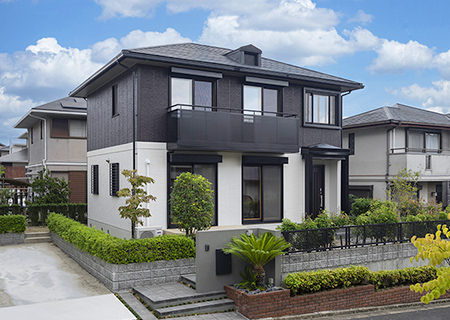外壁はモダンなツートンを採用し、スタイリッシュながらも街並みになど馴染むデザインに。クローズ外構からオープン外構に変更し、アプローチも印象を刷新しています。
