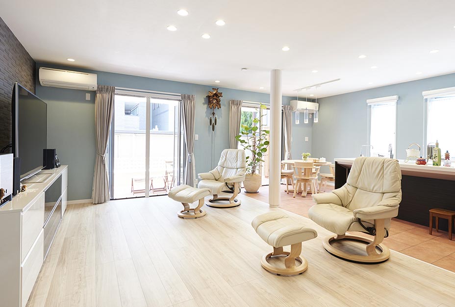 南側の3室をつなげ、約23畳のLDKに。明るくゆとりある、家族みんながうれしい住まい