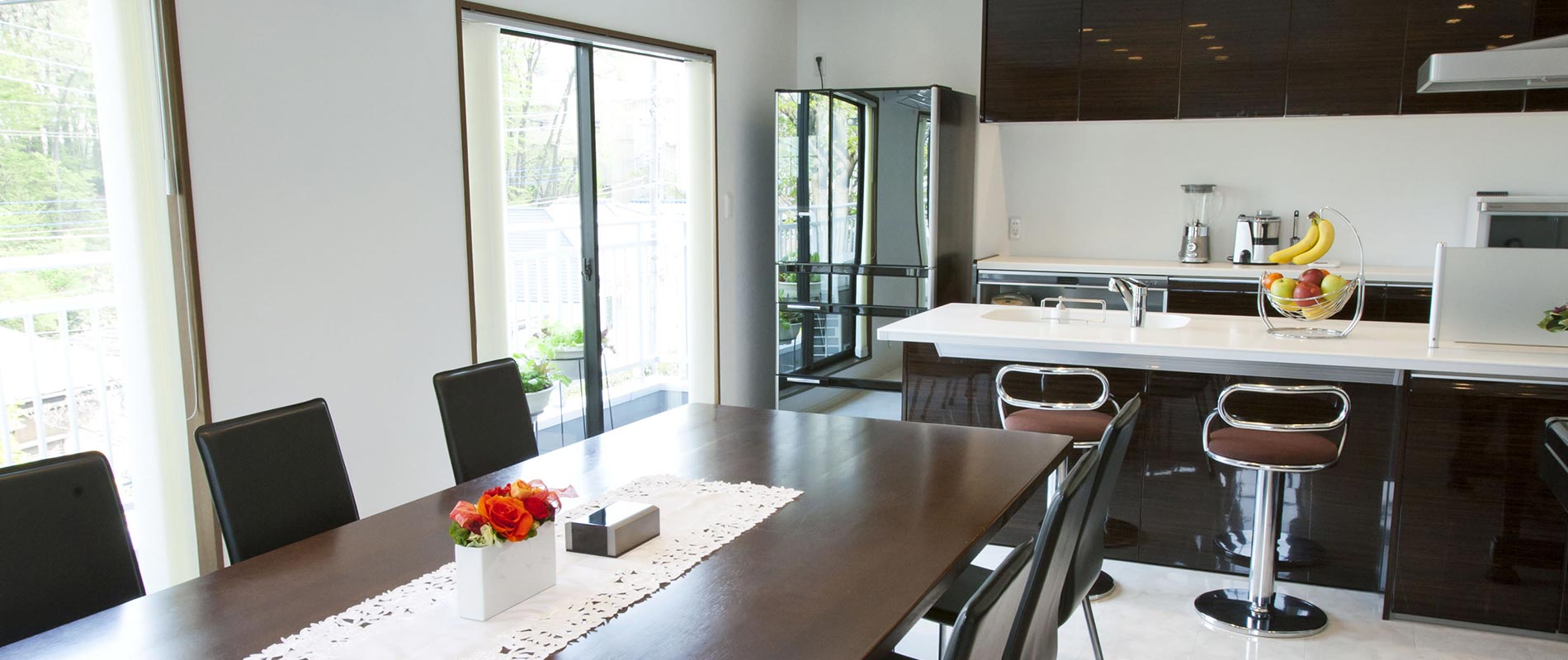 オープンタイプの対面式キッチン。最初は白いキッチンを希望していたそうですが、大和ハウス工業のショールームの展示を気に入って計畫変更しました。そのことにより空間にアクセントが加わっています。
