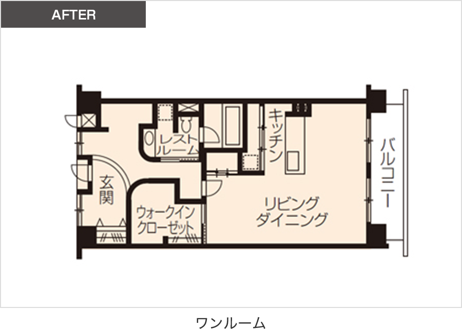 個室の多い間取りを、収納を備えたワンルームに変更