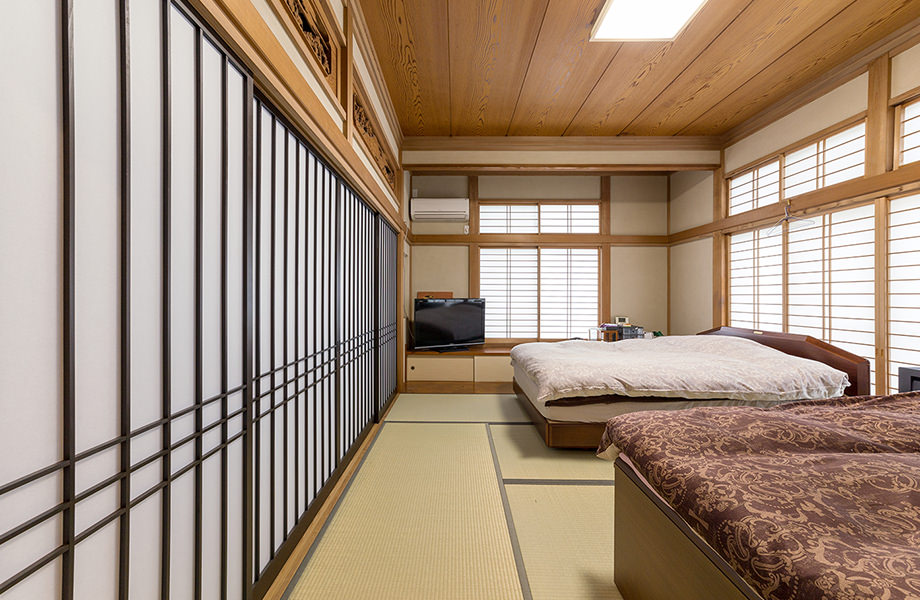 畳を替えて一新した1階和室。隣接する和室との間仕切りには、ご希望のイメージに沿って製作したオリジナルの建具を合わせています。以前の和室よりも明るく華やかな雰囲気を漂わせる空間へと様変わりしました。