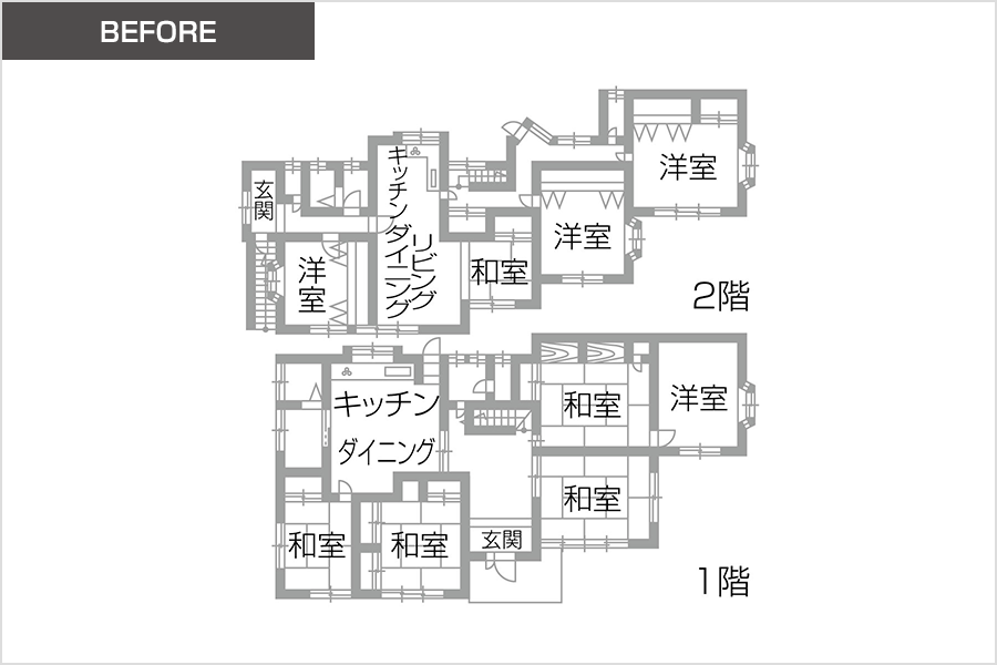 多かった和室をなくして、両世帯ともに広々と気持ちよく過ごせるLDKへ