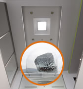 低い位置からの太陽光でも採光できる半球狀の採光口を屋根に設置し、早朝から夕方まで自然光を室內に供給できる光ダクト。エントランスに導入して、ご來訪の方々からもご好評をいただいています。