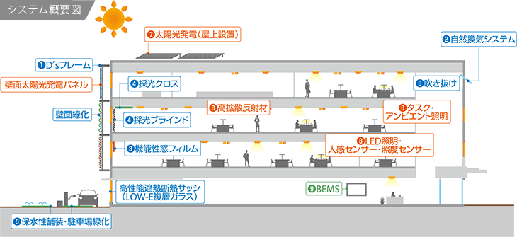 環境配慮を重視するお客さまのご要望に環境配慮型事務所「D’s SMART OFFICE」を提案、大和ハウス工業2例目となるZEBを実現しました。
