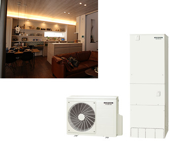 そのための工夫として、給湯器では、通常、深夜電力でお湯を沸かし日中に使用しますが、このエネルギー自給住宅では太陽光発電の電力で晝間にお湯を沸して夜にかけて使います。これにより、太陽光発電で創出した電力をそのまま給湯に使うことができ、外気溫が高い時間帯に使用することで給湯器自體の効率も上がります。