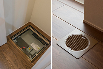 夏期に床下の冷たい空気を利用して冷房補助を行うシステム。