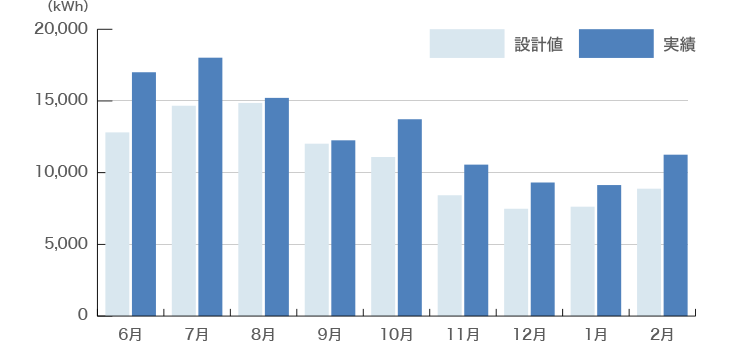 太陽光発電による発電量の推移(2021年6月~2022年2月)