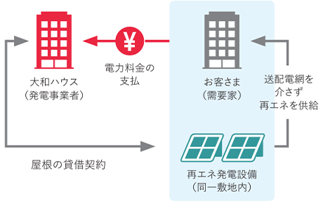 敷地內(nèi)で再エネを発電し、送配電網(wǎng)を介さずに直接供給するモデル。