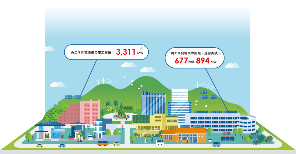創(chuàng)業(yè)者の石橋信夫は「21世紀(jì)は風(fēng)?太陽(yáng)?水の時(shí)代が來(lái)る」と予見(jiàn)しました。その遺志を継ぎ、當(dāng)社グループは2007年、風(fēng)力発電事業(yè)に參入しました。その後も、大和ハウスグループの強(qiáng)みである豊富な建築実績(jī)をもとに、既存建物や地盤(pán)の狀況に応じた最適な提案を行い、太陽(yáng)光発電?風(fēng)力発電?水力発電の導(dǎo)入を推進(jìn)。それに加え、自社での発電所の開(kāi)発?運(yùn)営を通じた売電事業(yè)や、電力小売事業(yè)にも取り組んでいます。これまでに蓄積したノウハウや全國(guó)規(guī)模の土地情報(bào)網(wǎng)を活かし、これからも、地球の未來(lái)を創(chuàng)る覚悟を胸に、社會(huì)全體をお客さまと捉え、脫炭素社會(huì)の実現(xiàn)に貢獻(xiàn)します。