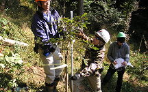 (3)植樹:林內整理の後に六甲山の在來種のコナラ、ヤマザクラなどの苗木を植えます。