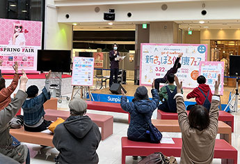 概要:一社の社員でもある、3つの病院と大學、専門學校などがブースを出し、商業施設內の広場で健康に関する測定や指導、體操、子ども達に體感していただく健康にまつわる職業體験などを実施。
