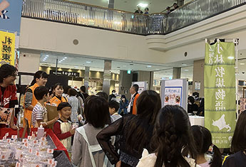 概要:厚別區內で生産されている食品や、生産元の食品企業の紹介などを目的とした催しに參加しました。當地域にある児童會館の子どもたちが育てたジャガイモを使用し、地域の商店が商品化。その商品を商業施設で子どもたちが來場者に販売する職業體験をしていただきました。