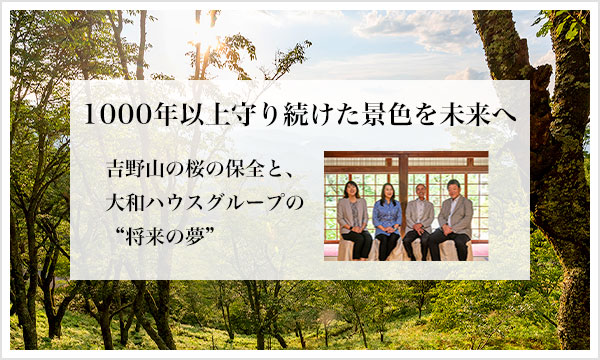 創業者ゆかりの地?奈良県吉野山を中心に、日本を象徴する花である桜と、これまで大切に受け継がれてきた素晴らしい風景を次世代につなぐ活動を、日本全國にある事業所とともに実施しています。