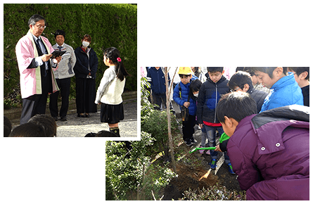 みんなの和太鼓の音が懐かしいのぉ。みんなが大切に見守っているから、苗木の幹もこれからもっと大きくなっていくじゃろう。きれいな花が待ち遠しいのぉ~。(さくじい)
