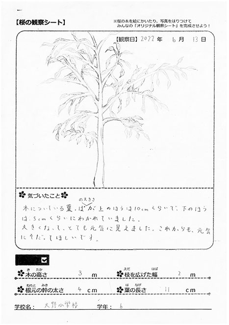 桜プロジェクトを実施した小學校?幼稚園で植えた桜の観察會を実施しています。観察した桜を見て、みんなで桜の成長を共に楽しもう!!