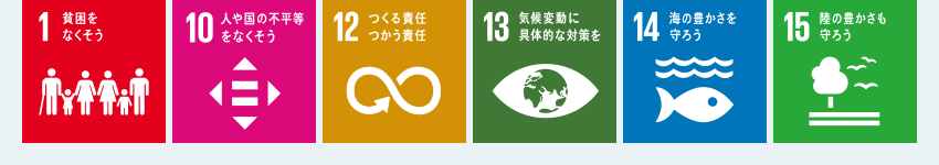 國(guó)連が掲げる「持続可能な開発目標(biāo)」(SDGs)の12番目に、「つくる責(zé)任、つかう責(zé)任」があります。エシカル消費(fèi)を?qū)g行に移すことは、少なくともこの半分を果たすことでもあると言えるでしょう。それだけでなく目標(biāo)1(貧困をなくそう)や目標(biāo)10(人や國(guó)の不平等をなくそう)、目標(biāo)13(気候変動(dòng)に具體的な対策を)、目標(biāo)14(海の豊かさを守ろう)、目標(biāo)15(陸の豊かさも守ろう)といった目標(biāo)をも同時(shí)にカバーできるのが、エシカル消費(fèi)なのです。