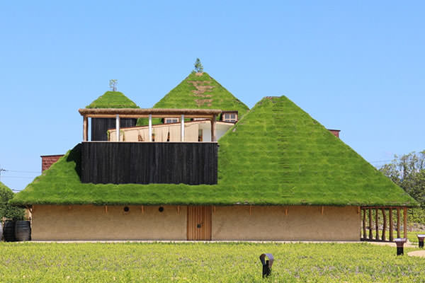 飲食店やマルシェなどが入る複合施設(shè)「ラ コリーナ近江八幡」の草屋根は、藤森さんが設(shè)計。その名の通り、屋根一面が草に覆われており、緑豊かな周囲の環(huán)境と地続きに連なる。2015年の作品。