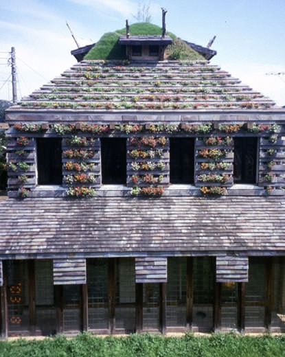 藤森 : 一番分かりやすいのは、〈草屋根〉でしょう。屋根一面に草を生やす建物は、ずっとやってみたいと思っていましたが、なかなか建て主が現(xiàn)れませんでした。それまで実験は散々していて、緑が枯れてしまう失敗も多かったのですが。草木のメンテナンスを含めて注意深く考え、〈草屋根〉は実現(xiàn)することができました。