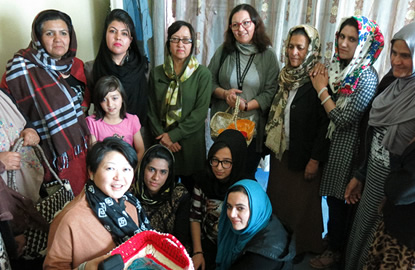 アフガニスタンのカブールで國連の活動(dòng)を視察。國連機(jī)関の支援を受けながら、自分たちで収入創(chuàng)出のプロジェクトを立ち上げ、今は自立して手工蕓品づくりを行っている女性たち。
