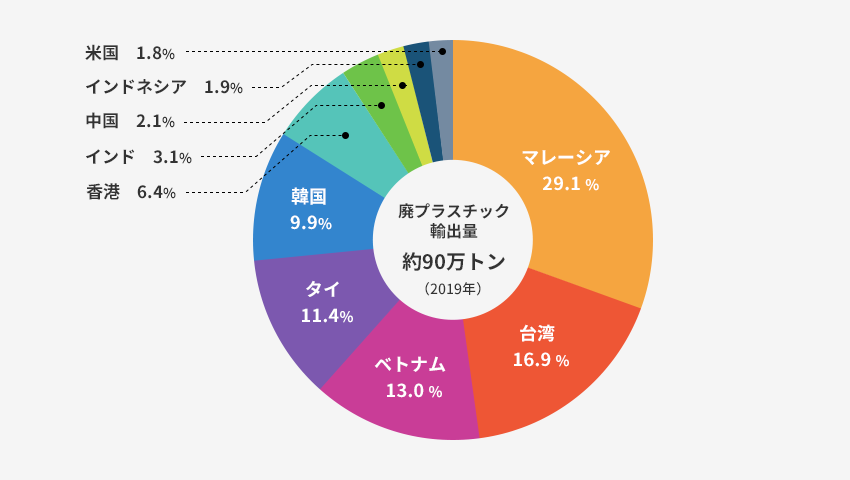 2019年 日本の廃プラスチックごみ輸出先上位10カ國