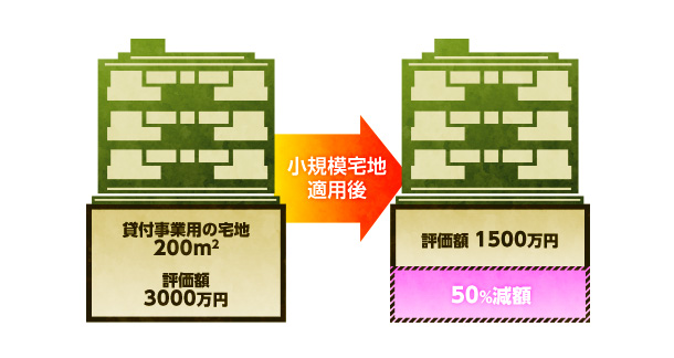 - ?「一定割合の減額」とは:貸付事業用宅地の減額割合は50%です。