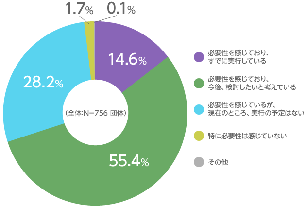 國土交通省による「公的不動産の合理的な所有?利用に関するアンケート調(diào)査(2008年)」によると、地方公共団體における公的不動産のマネジメントの狀況に関して、98.2%とほぼすべての地方公共団體が「不動産の合理的な所有?利用の必要性を感じている」と答えています。しかし、その8割以上が「必要性を感じているものの実施していない」と答えているのが実情です。