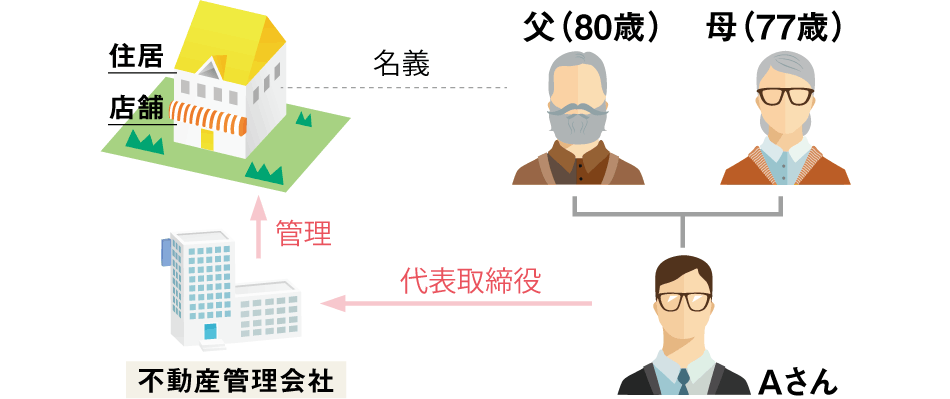 Aさんは都心に土地と築50年の店舗と住所を兼ねた実家があります。現在、ご両親(父80歳、母77歳)は健在でお二人で住んでおり、実家の名義は父です。Aさんが代表取締役を務める不動産管理會社が実家の管理をしていました。父は現段階では判斷能力はありますが、最近は年のせいか元気がなくなり、體力もなくなっているため外出が億劫になってきたようです。