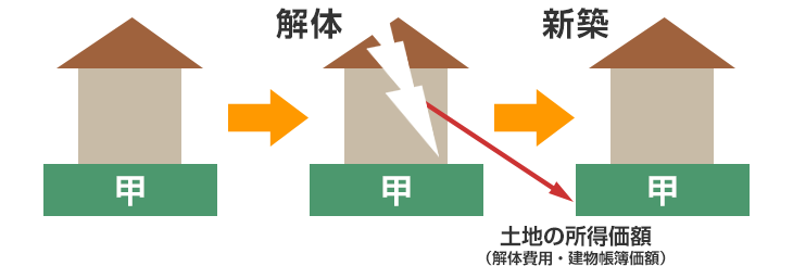 建物の敷地を建物とともに取得した場合、その取得後おおむね1年以內にその建物の取壊しに著手するなど、初めからその建物を取り壊して土地を利用する目的であることが明らかな場合には、その建物の取壊しのときの帳簿価額と解體費用の合計額は、その土地の取得価額に算入することとされています。