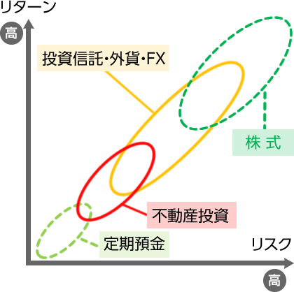 図2:不動産投資と株式投資におけるリスクとリターンの分布図