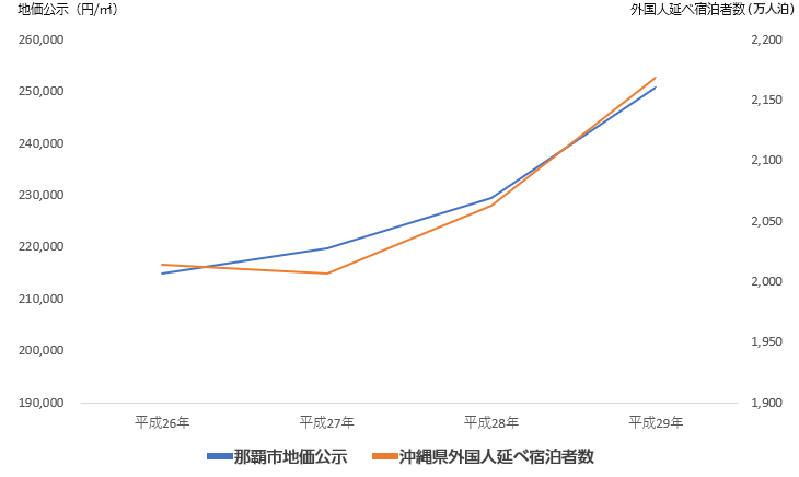 沖縄県で顕著なインバウンドと地価の関係