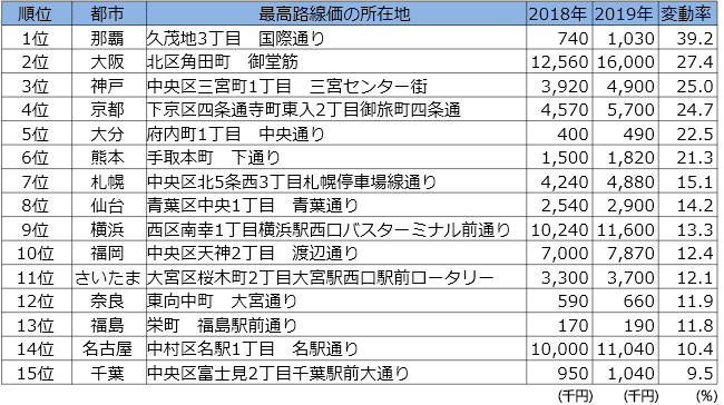 コラム vol.292インバウンド観光客急増エリアと地方都市の伸びが高かった2019年の路線価