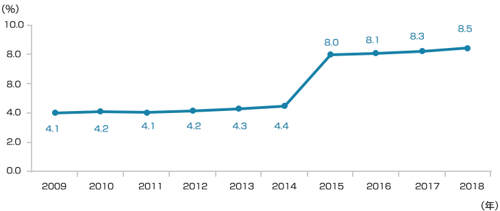 グラフでは、相続稅が改正された2015年(平成27年)に一気に増えていることが一目瞭然です。そして、改正以後2016年、2017年、2018年も微増していることが分かります。