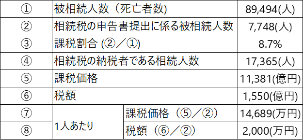 課稅割合とは、被相続人(亡くなった方)のうち、相続稅の申告書提出をしなければならない被相続人(注:実際の申告書提出は相続人です)の割合のことです。