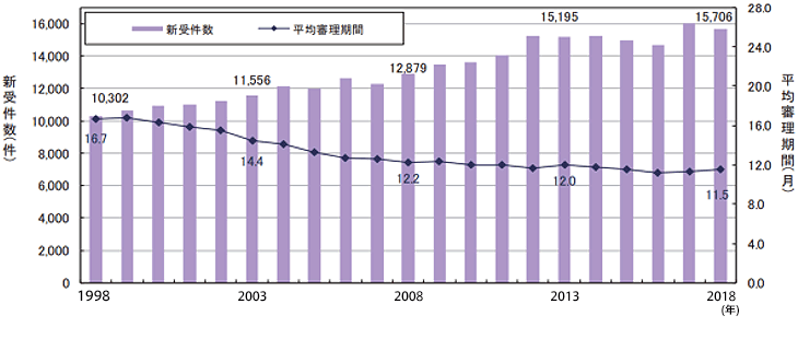 図1:遺産分割事件 新受件數(審判+調停)及び平均審理期間の推移